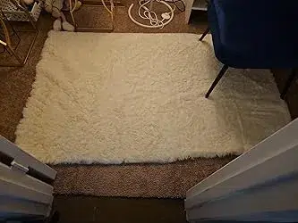 Habe zwei dieser 60 x 90 cm großen Teppiche gekauft, als sie im Angebot waren. Sie haben ein schönes, strahlendes Weiß, sind leicht und fühlen sich weich und luxuriös an. So weich, dass sie fast rutschig sind! Es fühlt sich morgens einfach gut an, darauf zu treten. Sie haaren kaum. Sie liegen flach, sogar direkt aus der Verpackung. Passgenau. Unsere Welpen lieben sie auch! Wir finden sie oft auf diesen Matten faulenzen. Sehr zufrieden mit diesem Kauf!