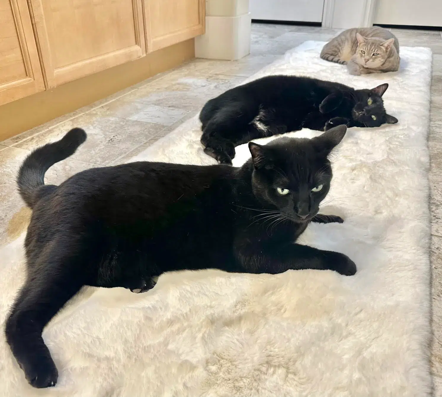 Der Teppich ist sehr dick, weich und fühlt sich wirklich wie Kaninchenfell an. Sehr gut verarbeitet und sieht toll aus! 😀✍️